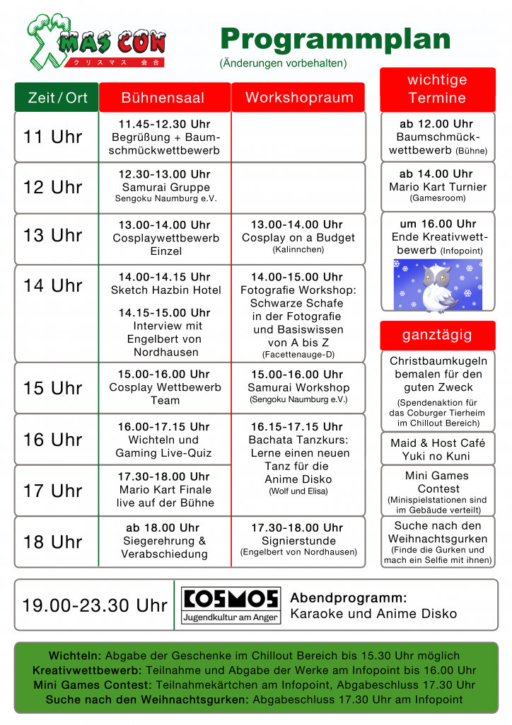 The German Xmas Con is a Christmas Anime and Manga Convention where fans from all over the world meet, find new and old contacts and give their hobby a real highlight at the end of the year! The organizers of the German Xmas Con have taken great effort to offer you an event like this for the first time.