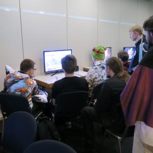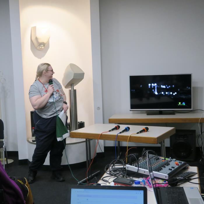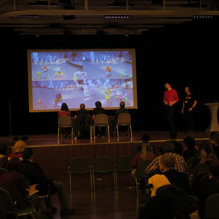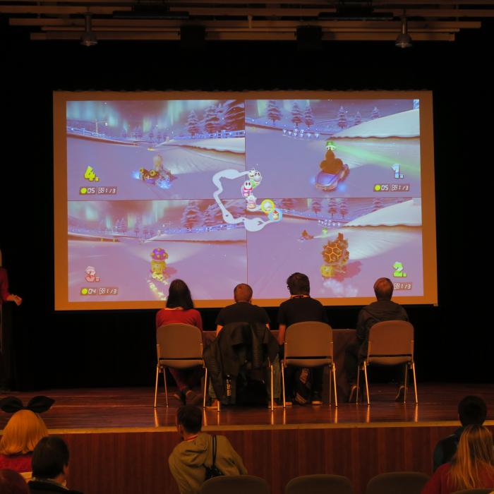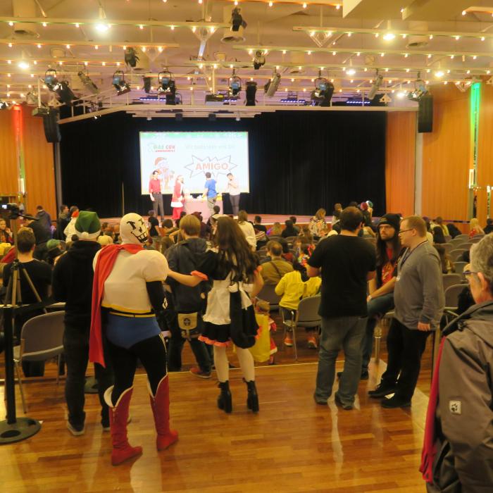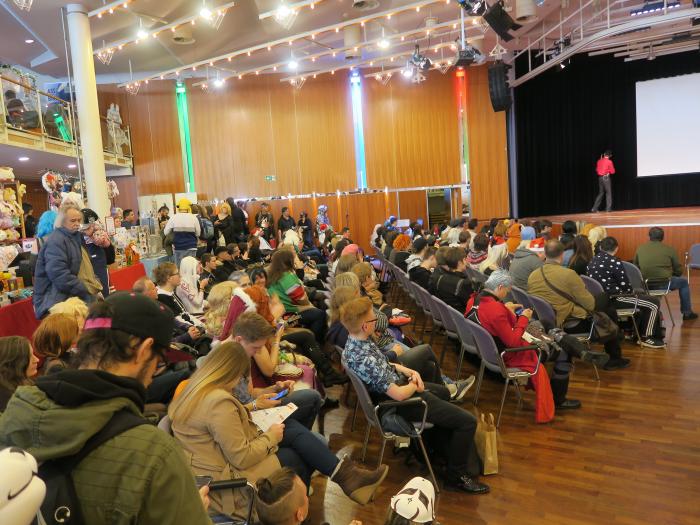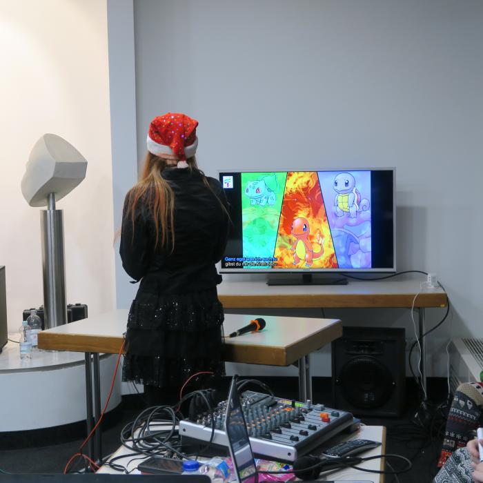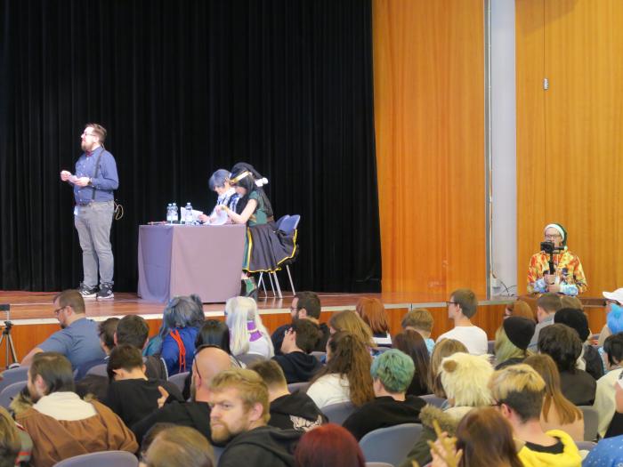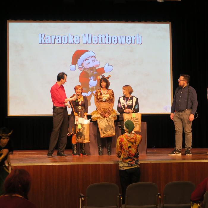 Karaoke is a very popular activity for many visitors to a convention. You can not sing? No problem, here you can shamelessly leave out and try to sing the text shown.