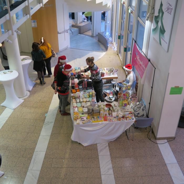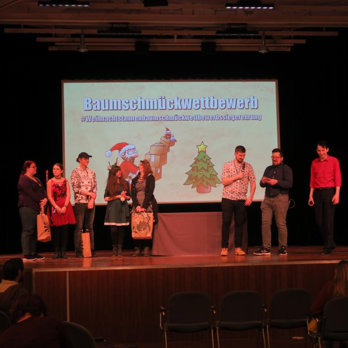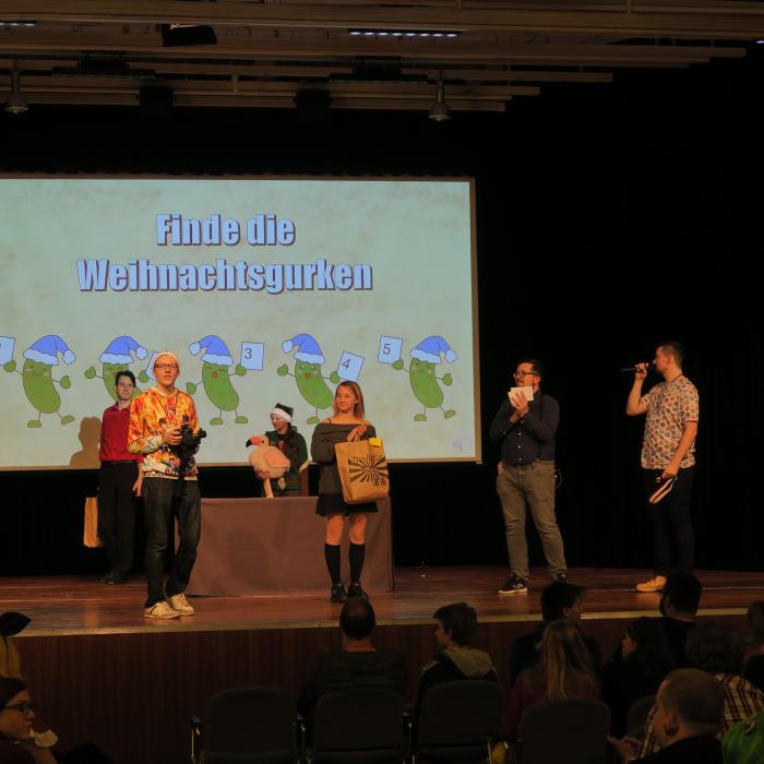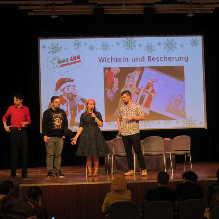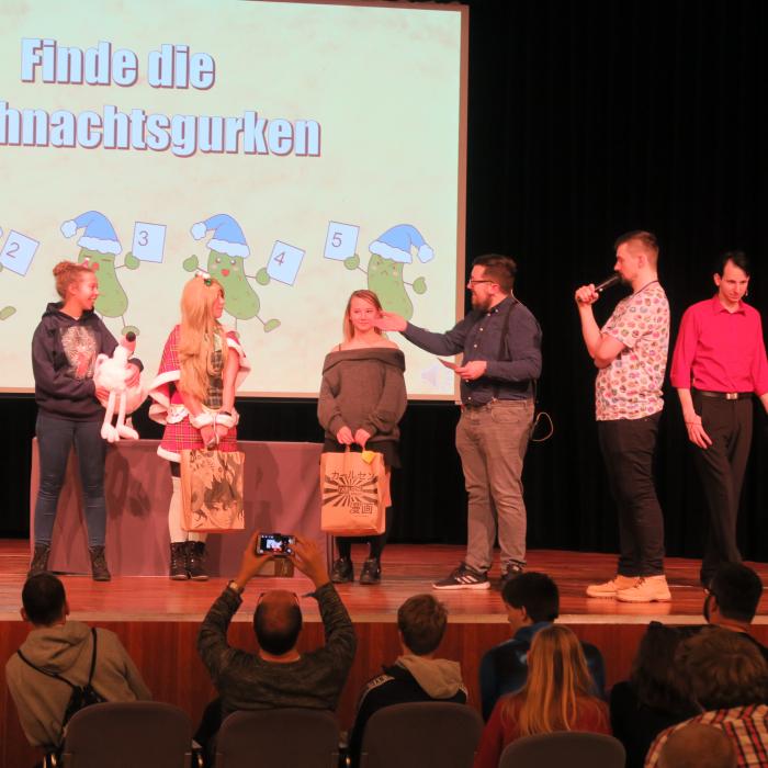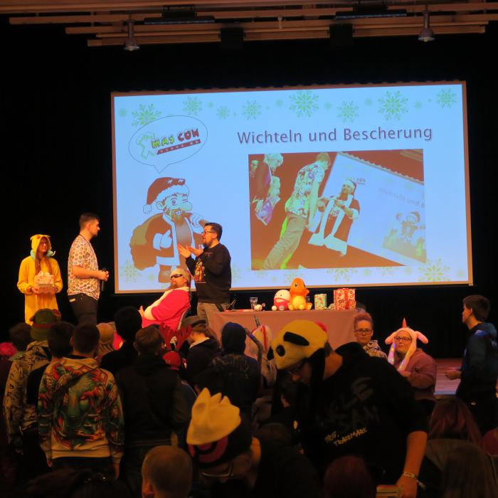 The Secret Santa next to and on the stage is a very special idea for you as a visitor. With a little bit of luck, you will win a great present on your seat.
