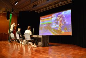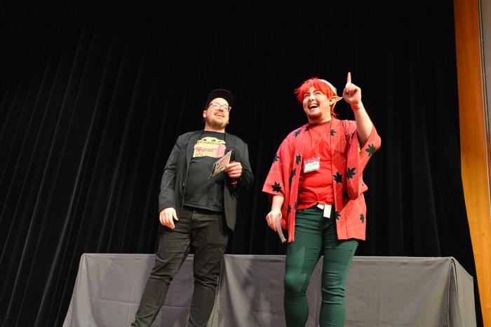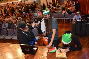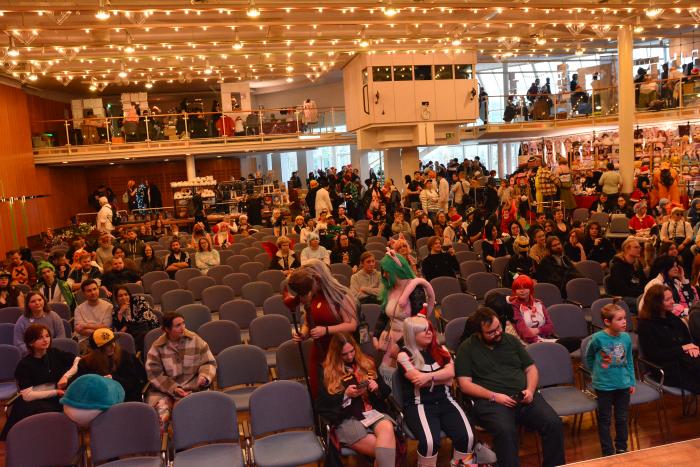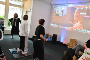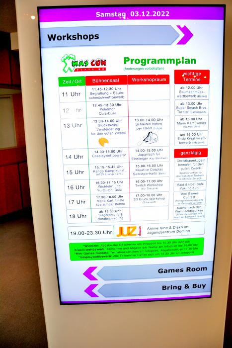 Karaoke is a very popular activity for many visitors to a convention. You can not sing? No problem, here you can shamelessly leave out and try to sing the text shown.