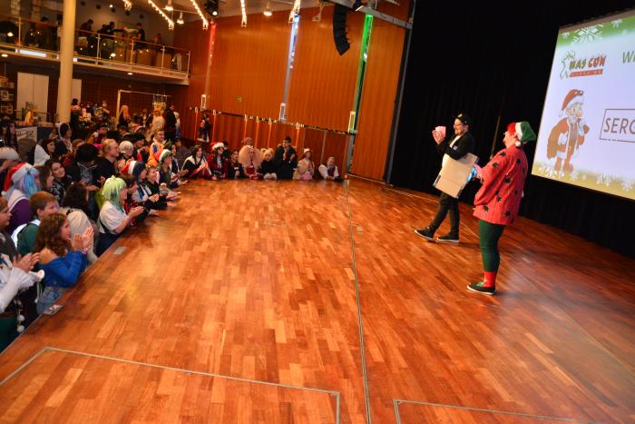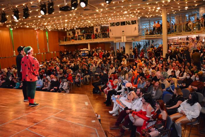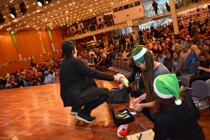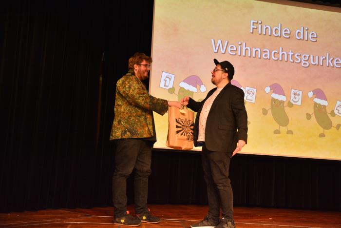 The Secret Santa next to and on the stage is a very special idea for you as a visitor. With a little bit of luck, you will win a great present on your seat.