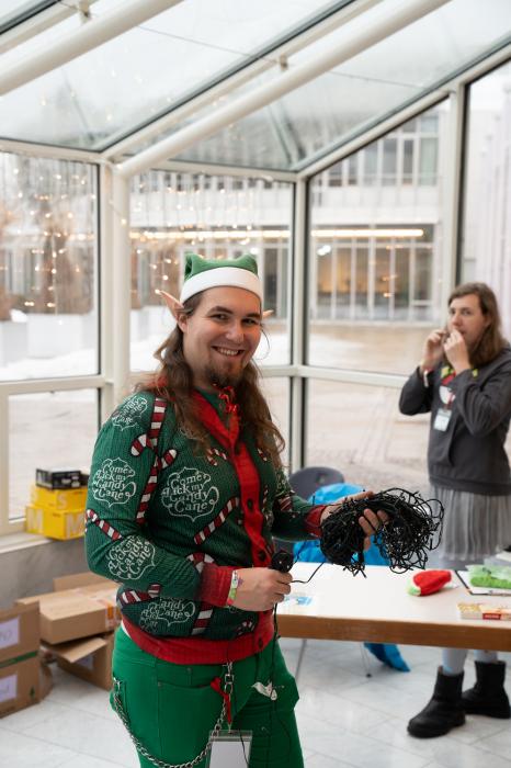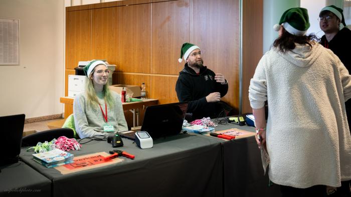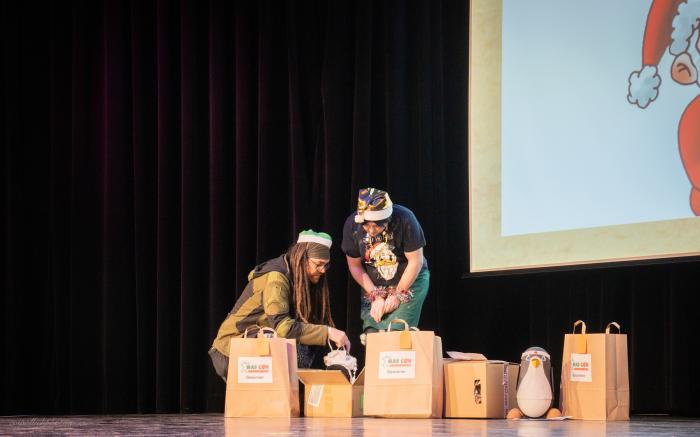 The Secret Santa next to and on the stage is a very special idea for you as a visitor. With a little bit of luck, you will win a great present on your seat.