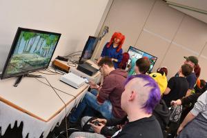 Karaoke is a very popular activity for many visitors to a convention. You can not sing? No problem, here you can shamelessly leave out and try to sing the text shown.