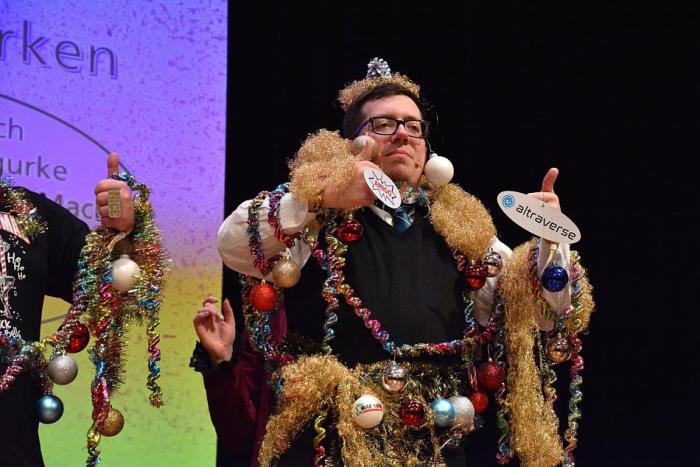 The Secret Santa next to and on the stage is a very special idea for you as a visitor. With a little bit of luck, you will win a great present on your seat.
